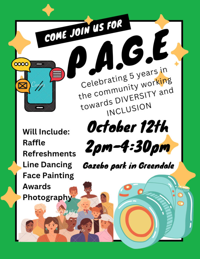 PAGE TURNS 5! PAGE has made a huge impact in our community. All PAGE members and friends are invited to this event from 2pm-4:30pm at the Gazebo on Broad Street on Saturday, October 12. There will be something for the whole family. We encourage you to rsvp for this event at .